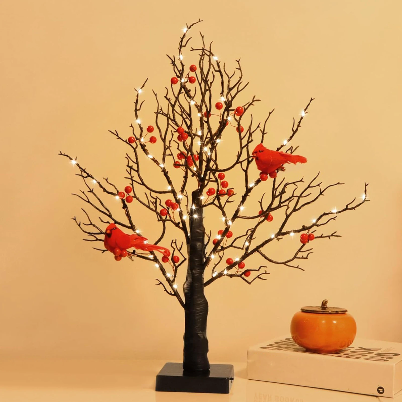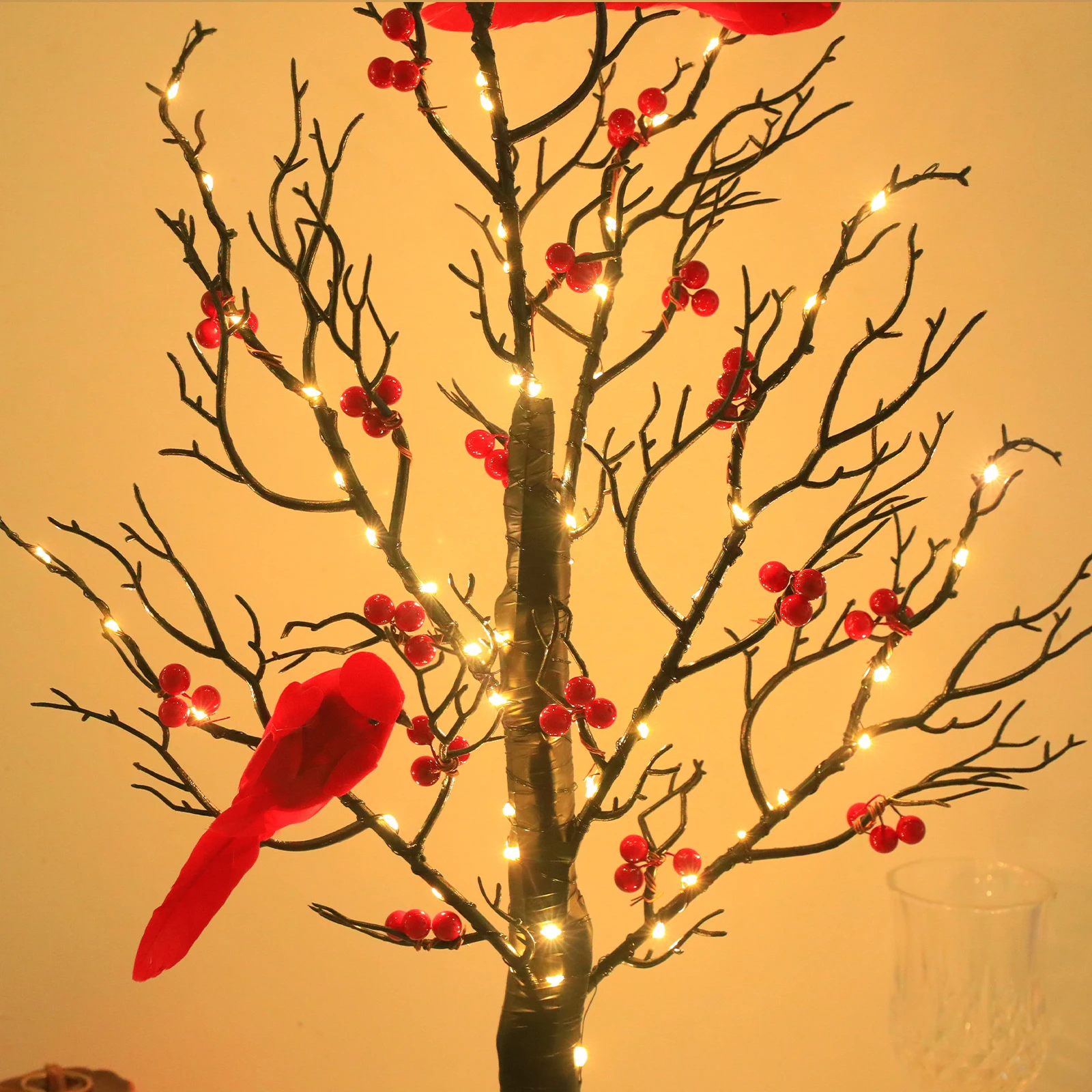 1.Immersive Holiday Glow: This vintage glowing tree with cardinals features delicate copper wire bulbs, red birds, and fruit patterns. When lit, it emits a warm, cozy light, instantly transforming any space into a festive wonderland and enhancing the holiday spirit in your home.